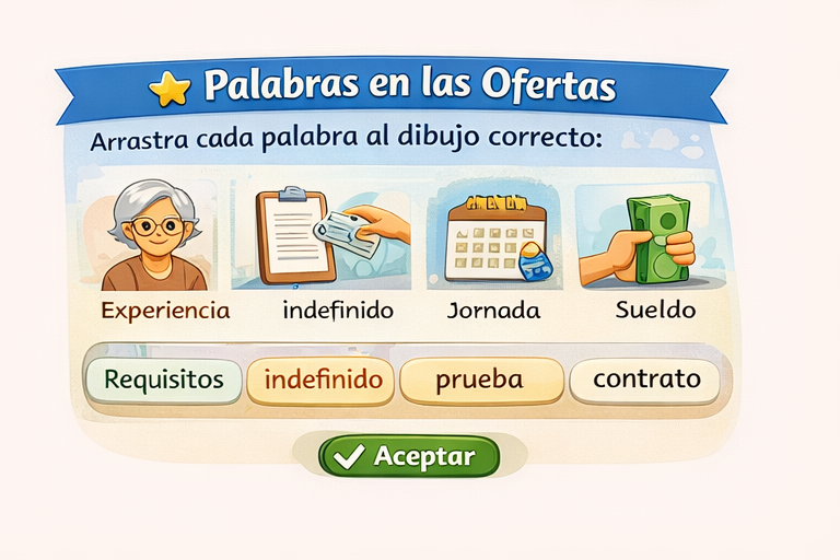 Aprende palabras clave que salen en ofertas de empleo, contratos, CV y entrevistas.